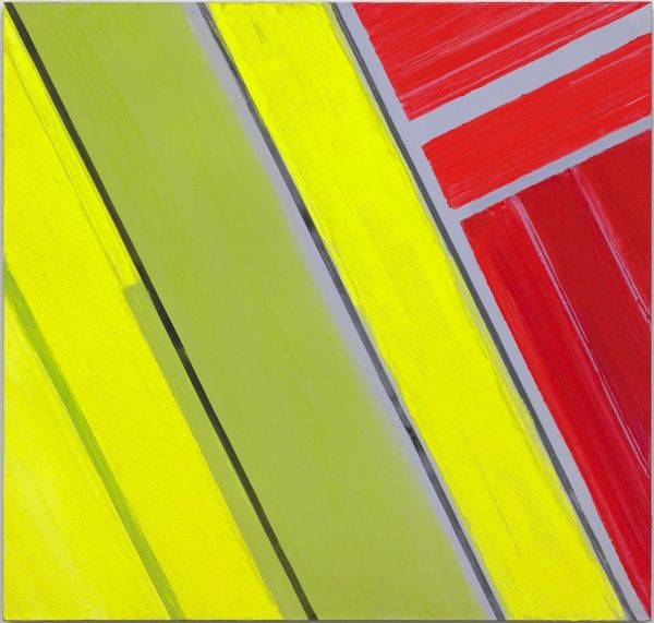 Ronald Davis made this piece, "Large Chartreuse," and I’m really interested in how he's handled this color. It's so pervasive, you almost don't notice the nuances at first, but they're there. The surface is super smooth, right? You can’t really see any brushstrokes or textures, which gives it this kind of calm, meditative feeling. It’s like looking at a still pool of water. I like how the chartreuse isn’t just one flat tone; there are subtle variations that make it feel alive. Like, maybe it’s reflecting light in different ways? It almost vibrates, right? The precise edges feel like they could be fabricated in a factory, a bit Pop Art, Warholian even. It reminds me of the hard-edged color field paintings by someone like Ellsworth Kelly, in that way it’s all about the shape and the color and not much else, but with Davis I sense he's also playing with illusionism, and with our perception of color. Ultimately it's about keeping the possibilities open, not nailed down.