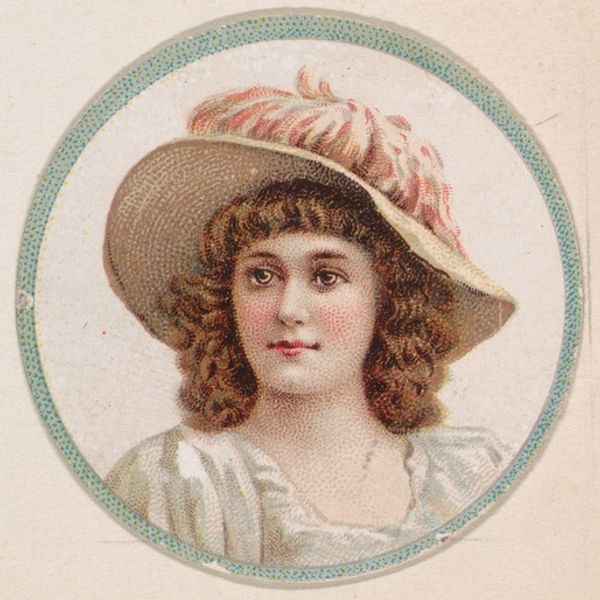 This small portrait of a woman, part of the Novelties series, was produced by Kinney Brothers Tobacco Company. The lithographic process used to create this card involved transferring an image from a stone or metal plate to paper, enabling mass production. The card's smooth surface and vibrant colors speak to the industrialization of art in the late 19th century, where images were no longer unique, hand-crafted objects but rather commodities circulated widely as promotional items. The choice of subject matter, a refined woman, speaks to the aspirations of tobacco consumers, suggesting sophistication and elegance. The Kinney Brothers’ portrait offers a glimpse into the intersection of art, industry, and consumer culture, inviting us to reconsider the value and meaning of mass-produced images.