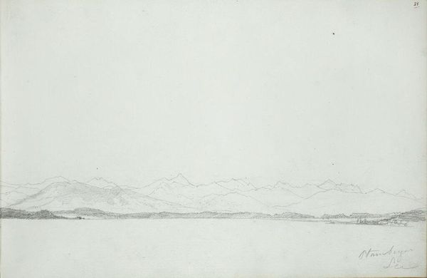 Editor: Here we have Muirhead Bone’s watercolor drawing, "Fiord near Bergen, Norway." There’s a wonderful sense of spaciousness. The muted tones create a hazy, almost dreamlike quality. What strikes you most about this piece? Curator: It's the tonal arrangement that holds my attention. Notice how Bone orchestrates a limited palette, primarily blues and creams, to establish depth and spatial recession. The composition is elegantly simple, divided horizontally into bands of sky, mountains, and water. How do these formal elements contribute to the overall effect? Editor: Well, the subtle gradations create atmosphere, almost like an impression. Curator: Precisely! Bone employs watercolor washes to build up translucent layers, allowing the paper's texture to subtly influence the final image. Consider the minimalist depiction of the boats – mere suggestions of form. What is the effect of this restrained technique on the viewer? Editor: It encourages you to fill in the details yourself, to imagine the scene. Curator: Indeed. Bone’s conscious manipulation of pictorial space emphasizes the two-dimensionality of the picture plane. His concern is less with depicting a specific location realistically, and more with exploring the inherent qualities of the medium itself. Editor: So, the 'what' of the image is less important than the 'how' it's made? Curator: To a considerable extent, yes. The work becomes a study in chromatic relationships, textural variations, and compositional balance. Do you agree this emphasis changes our experience? Editor: Definitely! I initially focused on the scenery, but now I'm much more aware of the artistry of it. Thank you. Curator: My pleasure. It’s through considering the formal elements that we truly come to understand an artist's vision.