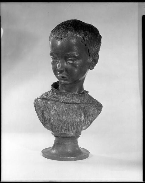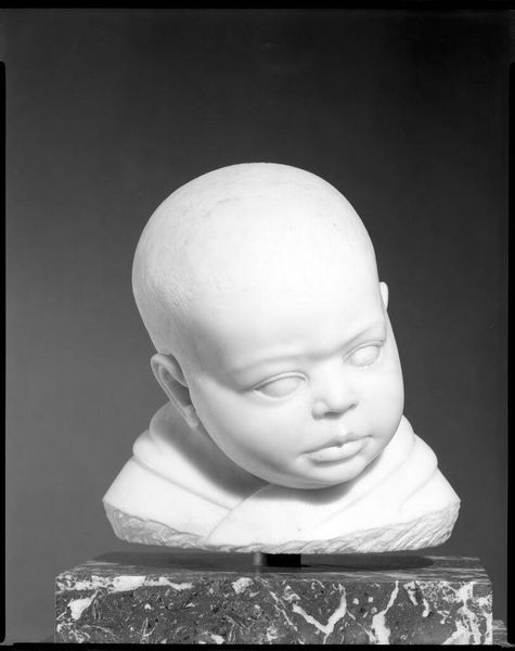 Editor: Here we have "Lille dreng," or "Little Boy," a marble sculpture created by August Saabye in 1860. It's currently housed at the SMK in Copenhagen. My initial impression is... well, the lack of pupils gives him a kind of unsettling yet innocent air. What catches your eye about this piece? Curator: Unsettling innocence... I love that! It reminds me of how we often try to capture idealized versions of ourselves or our loved ones, especially children. This little cherub, though, feels like a peek behind the curtain of Victorian sentimentality. Notice how Saabye’s realism teases the line between idealized beauty and something almost…clinical. Editor: Clinical? I hadn't thought of that. It's the texture of the marble, perhaps? It seems quite rough in places. Curator: Exactly! The rough texture adds another layer. Marble, in its pure form, symbolizes perfection, immortality. But here, you see the artist's hand, the chisel marks. It suggests a deliberate choice to show the labor, the human element in crafting this "perfect" child. Doesn't that make you wonder what Saabye was really trying to say about childhood itself? Editor: It does. It’s almost as if he's questioning the whole concept of childhood innocence being this pristine, untouchable thing. Curator: Precisely! It’s a playful jab at Neoclassical ideals wrapped in Realist sensibilities, with a wink of Saabye's personal touch, of course. Almost mischievous, don't you think? Editor: Absolutely! It makes you rethink your initial assumptions. Thanks for pointing that out. Curator: My pleasure! Art, after all, is a conversation. It changes with every perspective, with every pair of eyes that sees it anew.