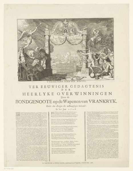 This etching commemorates the victories of the Allied forces against France in 1706 and, although anonymous, it speaks volumes about the cultural and political landscape of the Dutch Republic at the time. The image creates meaning through a combination of visual codes, cultural references, and historical associations. It is filled with allegory, with classical figures, and symbols of power and victory. The central image of battle is framed by emblems of justice, strength and freedom, reminding the viewer that what is at stake in this war are abstract virtues, not just land or political dominance. These engravings served as an important form of public communication in the early 18th century, especially in a highly literate and politically engaged society such as the Dutch Republic. They reflect a self-consciously progressive political culture that valued civic virtue, but they also reveal how early modern institutions shaped public opinion. Historians can use sources such as pamphlets, newspapers, and government records to understand the full significance of art like this and what public role it played at the time.