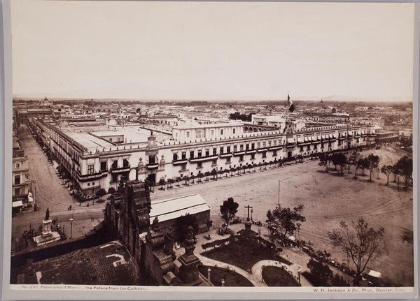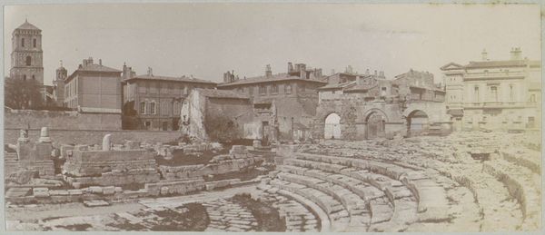 Editor: This photograph, "Delhi Gate" by Samuel Bourne, shows an impressive fortress. It has a rather somber, monumental quality, and it makes me wonder about its purpose. What's your take on this piece? Curator: Given Bourne’s commercial enterprise, we must consider this image in relation to the networks of colonial resource extraction. How does the photographic process itself—the silver gelatin print—become a tool for cataloging and, in a way, possessing this monument? Editor: So, the photo itself becomes a kind of commodity? Curator: Precisely. It raises questions about the consumption and representation of colonial spaces. Understanding the means of production helps decode its intended audience and purpose. Editor: That's a perspective I hadn't considered. It really reframes how I see the photograph. Curator: Indeed. It adds layers to our interpretation.