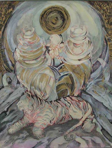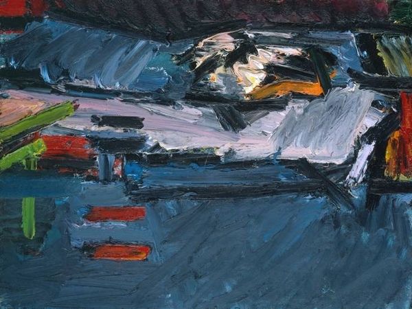 Editor: This is "Basin with Green Soap," by John Bratby, painted with, I believe, acrylic on canvas. It feels... surprisingly intimate. Almost like I'm peering into someone's personal space. What do you make of it? Curator: It’s interesting you say ‘intimate,’ because that’s exactly what Bratby was going for. Think about it: a sink, a place of everyday ablutions. But he’s not just showing us a sink, is he? He's almost flinging paint at the canvas, raw energy! The brushstrokes are so vigorous they almost feel like a confession. Does that make sense? Like he’s revealing something about his inner state through this very ordinary object. Editor: Absolutely. The expressionistic style really amplifies that feeling. The swirling paint almost makes me a bit seasick, to be honest. It's so frantic! Curator: And yet, controlled, don't you think? Like he’s wrestling with his demons and the sink is the battleground. The soap, a tiny splash of verdant life in the turmoil – a fragile hope for cleansing? Or perhaps a bitter jab at the superficiality of cleanliness in the face of…everything else? Editor: I never would have thought of the soap as a symbol of hope! I just saw it as... soap. I suppose I was missing the artist's own emotions embedded in the swirling chaos of it all. Curator: Exactly! The everyday, seen through a powerfully subjective lens. Bratby wasn't afraid to show us his guts, even in something as mundane as a sink. The question then, becomes: what guts are *we* seeing? Editor: Well, that's something to ponder, isn't it? Thanks for the…visceral perspective. Curator: My pleasure. Art should get your hands dirty sometimes, wouldn’t you agree?