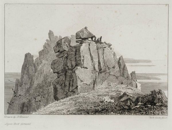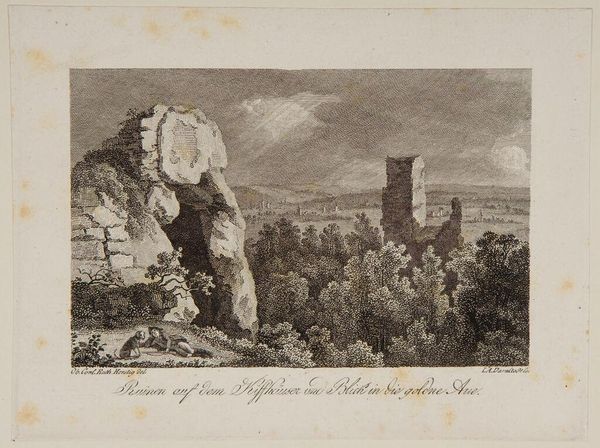 Editor: This is Johann Adolph Darnstedt's "View of the Highlands." The etching is so detailed, capturing this jagged landscape, but it feels…stark. What stands out to you? Curator: The starkness is precisely the point. Landscapes like this carry a profound weight. Consider the Romantic era; mountains represented the sublime, a confrontation with nature's overwhelming power. What emotions do you feel when viewing this image? Editor: A sense of awe, but also isolation. Curator: Precisely! That isolation speaks to a deeper human longing for connection with something greater. The Highlands become a mirror reflecting our own insignificance, and perhaps, our potential for transcendence. Editor: So, the landscape isn't just a place, but a symbol? That’s fascinating. Curator: Indeed. It's a symbol of our enduring quest for meaning in a vast, indifferent universe.