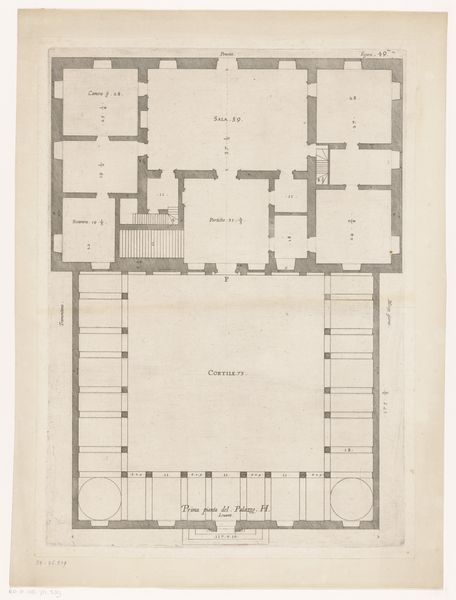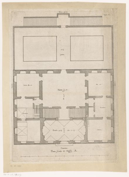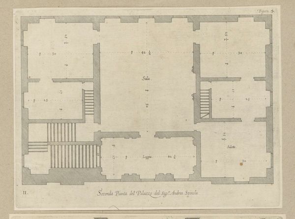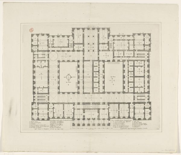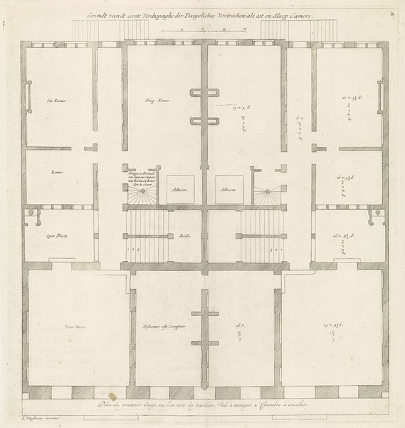 This is Jean Pelletier's "Plattegrond van paviljoen," a detailed architectural plan made with pen and ink. Pelletier, born in 1736, lived during a time when architectural design was deeply intertwined with social hierarchies. These buildings were more than just structures; they were statements of power and status. The drawing meticulously maps out the layout of a pavilion. We can see the staircases, rooms and entrances. The architecture subtly reinforced the societal norms of gender and class. These spaces were often designed to keep certain people visible and others out of sight. Consider how the design might affect someone's experience of moving through the space. Pelletier’s work offers us a glimpse into how architecture helped to construct the social world. It invites us to reflect on how buildings both shape and reflect the identities of those who inhabit them.