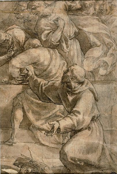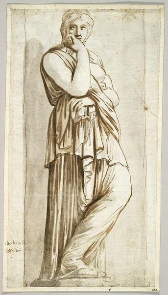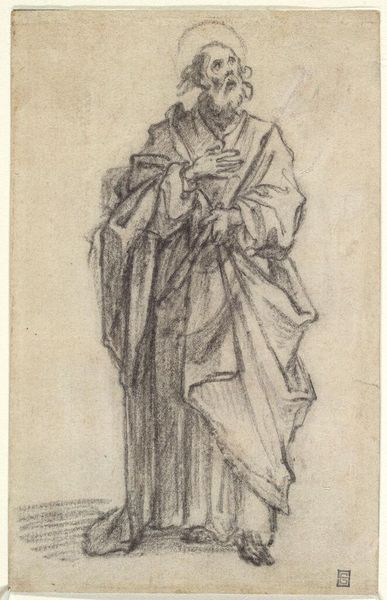 Edward Burne-Jones created this sketch of Noah sometime in the 19th century, most likely using graphite pencil on paper. The choice of graphite allows for the creation of tonal depth, from light to dark, and it's this modelling of light that really gives the figure its sense of presence. Burne-Jones was known for his involvement with the Arts and Crafts movement, which emphasized handcraftsmanship in response to industrialization. Here we see a work that is entirely dependent on the artist’s hand for its effect. The hatching and cross-hatching that define the drapery and the subject’s beard are labor-intensive, a world apart from the mechanization transforming the art world and the economy in general. Even so, the sketch remains incomplete, a record of work in progress. This reminds us that drawings are often steps along the way to larger projects; Burne-Jones might have used this preparatory study for a painting, tapestry, or stained glass window. Approaching this sketch in terms of material and making helps us to appreciate the artist's working process, challenging the traditional hierarchy between drawing and other forms of art.