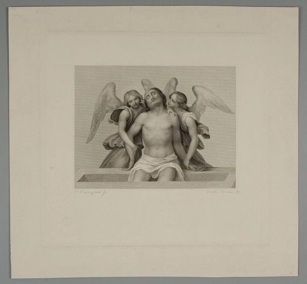 Curator: Ah, this piece by François Forster, titled "The Three Graces," found at the Harvard Art Museums, captures a timeless vision. Editor: What strikes me immediately is how the figures are rendered in such delicate detail, almost like engravings on precious metal. I wonder about the paper it's printed on. Curator: I’ve always felt a profound sense of balance when viewing it; a graceful rhythm between the figures and the landscape. Editor: And the figures themselves - their smooth skin juxtaposed with the rough texture of the ground. It speaks to a sort of idealized labor, perhaps? What kind of material constraints shaped Forster's vision? Curator: Perhaps, it is a dance of ideals, spun together with ink and paper... Editor: Ultimately, it serves as a reminder of the materials that bind and define our artistic expressions.