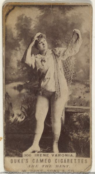 This photograph of Nina Conti comes from a series produced by William S. Kimball & Co., a 19th-century cigarette manufacturer. The company printed images of actresses and other popular figures on small cards, inserting them into cigarette packs as a marketing gimmick. It’s worth noting that these cards were not produced as artworks, but rather as promotional items. The material is paper, processed and printed for mass consumption. The image itself presents an intriguing combination of artifice and nature, with Conti posed in a theatrical costume, evoking a forest nymph or fairy. Considering the social context, the mass production of these cards reflects the rise of consumer culture and the industrialization of image-making, presenting a stark contrast to traditional artistic practices. What was once the domain of skilled artisans was now replaced by machine production. It prompts us to rethink the value and meaning we assign to objects, and the labor involved in their creation.