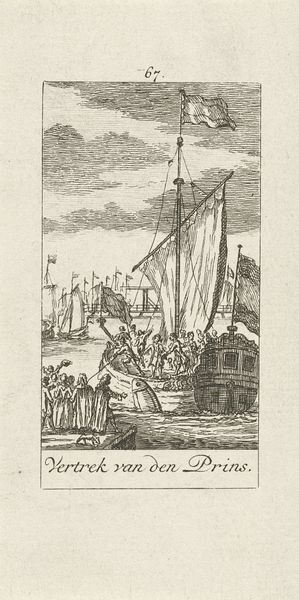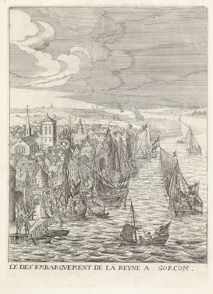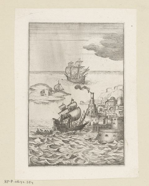 Simon Fokke made this print of the Gelderse troops attacking Enkhuizen in 1712, using etching. Prints like this one served an important public function. The image depicts an event from 1537, part of a long history of conflict in the Netherlands as various regions struggled for power and autonomy. In the 18th century, prints like this one served to reinforce a sense of national identity. Here, we see the troops of Gelderland, identifiable through their flags, engaged in battle on the water, with the town of Enkhuizen visible in the background. Visual codes were used to convey a sense of drama and historical importance. The composition is dynamic, with the boats and figures arranged to suggest movement and action. The inclusion of recognizable landmarks like the church spire would have helped viewers connect the scene to their own geographic and cultural context. We can consider the social conditions of the time in which it was made, the 18th century, a period of growing national consciousness in the Netherlands. Prints like this played a role in shaping that identity by visually representing key moments in the nation's history. Historians can delve into archives, maps, and other historical documents to further enrich our understanding of its meaning and impact.