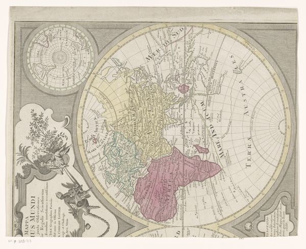 This "Hemelkaart met de noordelijke sterrenbeelden" or Star Map with the Northern Constellations, was made by an anonymous artist using ink on paper. Engraving allowed for the mass production of images, making knowledge accessible to a wider audience. The fine lines and intricate details of the constellations are a testament to the engraver’s skill, and the printing processes used. Look closely, and you'll notice the subtle variations in line weight that create depth and shadow. This suggests the amount of labor that went into creating this print, with artisans meticulously transferring the design onto metal plates, and then carefully inking and pressing each sheet. This piece also reminds us that maps are not just representations of physical space, but also reflect the beliefs, values, and social structures of the cultures that produce them. In a time when global trade and exploration were on the rise, star maps like this were essential tools for navigation and commerce. By considering the materials, techniques, and historical context of this star map, we gain a deeper appreciation for the cultural significance of this artwork.