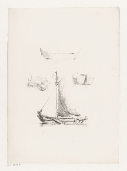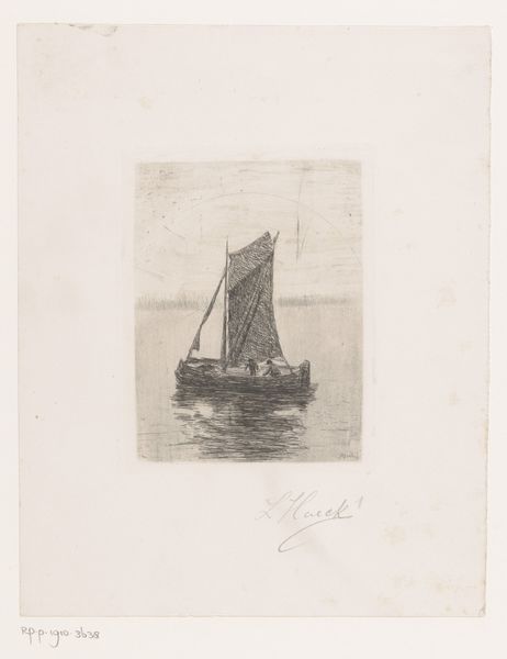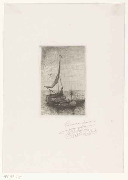 Frans de Vadder created "Boats on the Water", an etching, sometime between 1874 and 1936, a period when European art was reckoning with rapid industrialization and urbanization. De Vadder, working from Belgium, engages with the legacy of Dutch marine painting, which historically served as a tool for national identity, reflecting the Netherlands' maritime power and trade. But this small etching presents a different vision. Rather than grand naval fleets, we see humble boats at rest, evoking a sense of quietude. The printmaking medium itself lends a democratic accessibility to the image, in contrast to the often-exclusive world of oil painting. These boats remind us of the working-class individuals whose livelihoods depended on the sea. Consider the labor, the risks, and the stories held within those vessels. De Vadder gives us not a celebration of power, but an intimate view of daily life, inviting reflection on the human connection to water and the simple beauty of a common scene.