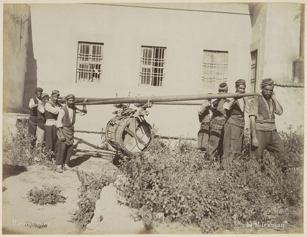 Editor: Here we have "Perzische herberg te Rezan," or "Persian Inn at Rezan," possibly taken between 1925 and 1926 by A.G.A. van Eelde. It's a photograph that captures a group of people in what appears to be a Middle Eastern or Central Asian setting, and there’s even a car in the shot! I'm really struck by how this one image tells so many stories; there’s a collision of tradition and modernity happening. What draws your attention in this work? Curator: This photograph presents a fascinating intersection of technology and tradition, East and West. We see this through the contrast of the automobile and what looks to be an adobe building. This would have been a period in time where these technologies would have been more uncommon in some regions. Who owned that car? What goods did that building hold? And who consumed those? Editor: That's interesting. I hadn't considered the specific labor that went into producing the objects we see. Curator: Exactly. Let's consider the making of the photograph itself. What kind of camera was used? How was the film developed? The physical materials and the social context of their production and consumption are key to understanding its layered meaning. Editor: I never would have thought about photography in that way. How does the "Orientalism" tag relate to this image's materials and context? Curator: "Orientalism" implies a Western gaze on the East, which is pertinent here. Who is taking the picture and their biases, plays a huge role here, and so does where it will eventually be consumed and by whom. The photographic process itself – from camera to print – facilitated the spread of these perspectives, shaping Western understandings, and ultimately Western power over, the depicted cultures. Even this particular copy existing in this museum is indicative of this global flow. Editor: That's made me look at the photo from a totally different perspective, thinking about trade and power dynamics expressed in the physical elements in the shot, even down to the chemicals used to develop it! Curator: Precisely. Seeing the materials and their creation opens a deeper conversation than just the immediate image. It prompts us to think about the complex web of global connections.