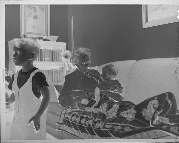 Editor: In this photograph by Martin Schweig, "Untitled (very young girl and baby boy posed sitting on floor looking at toy mailbox)," we see two children absorbed in play. It strikes me as a very intimate scene. What symbols jump out at you? Curator: The "Playskool Postal Station" is intriguing. Mailboxes represent communication, but here, geared towards children, it suggests early socialization and perhaps even societal expectations around correspondence. It speaks to how we teach children to connect. Editor: So it’s not just about play, but also about learning societal norms? Curator: Precisely. The image captures how children learn roles through imitation and toys become instruments of cultural transmission, reflecting our values. It’s about initiating them into the world. Editor: I hadn't considered that. It's fascinating how a simple toy can carry so much cultural weight. Curator: Indeed, everyday objects often hold deep symbolic meaning.