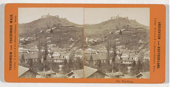 Editor: So, here we have Hermann Selle's "Gezicht op Ruhla," likely taken between 1868 and 1890. It’s an albumen print—a photographic process, I understand? The monochromatic palette gives it such an antique and nostalgic feel, doesn't it? Looking at this, what stories do you think this photograph is trying to tell us? Curator: Well, isn't it fascinating? This image pulls me into a quieter, almost dreamlike state. It speaks of a slower time. Look at how the village is nestled into the landscape. It almost feels…organic, wouldn’t you say? Almost as if the settlement grew there, a little like the vegetation, adapting and flourishing where it could. Editor: Yes! Like it sprouted there naturally. What is that photographic process bringing out for you in that organic feel? Curator: Right? I get lost imagining those lives. Back then, photography itself was a novelty, a scientific marvel and a budding art form combined! This photographer is meticulously recording, preserving a specific, maybe vanishing, reality…or maybe even creating one. Is the haze simply age or deliberate soft focus, I wonder? Perhaps intending to capture something more "beautiful" or evocative, rather than simply representational. You know, turning something like photographic truth into poetry. Editor: So you feel like it's less objective truth and more...subjective interpretation? Curator: Precisely! And who knows, perhaps Selle walked down that road on that very day with some preconceived notion of a perfect town, a vision, rather than something clinically accurate, just using a photographic recording to bring that view to life? This makes the photograph more his, doesn’t it, regardless? Makes it more Selle than Ruhla, at least just for us! Editor: That's a really interesting perspective! I hadn't considered the idea of imposing a vision onto a scene through photography. Curator: Well, thinking of it, it can be applied to any time an artist picks up a paint brush! Now what do *you* see as we walk away from this photographic poem? Editor: I see that perhaps the poem wasn’t Ruhla as it really was, but as Selle remembered it. Maybe photography itself is a collaboration between subject and memory! Thanks!