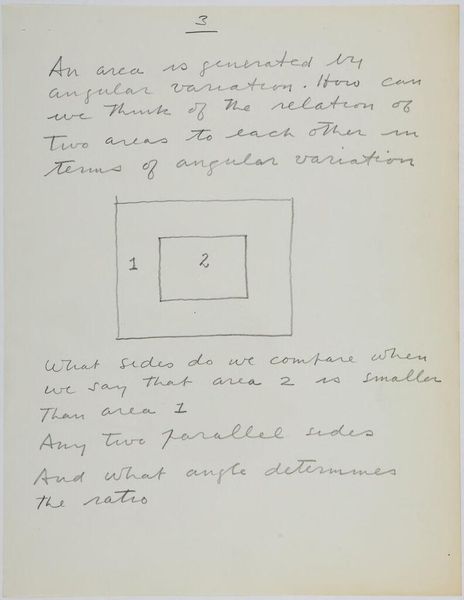 Editor: So, here we have Stuart Davis's "Art Theory Text with Field Diagrams," from 1937. At first glance, it feels almost like looking at a blueprint, but a blueprint for…art itself. What do you make of this curious blend of text and image? Curator: It is curious, isn’t it? For me, this feels like peeking into Davis's mind, seeing how he deconstructed the world into these almost mathematical forms, but then reassembling them with his own artistic flair. It’s as if he’s saying that art is both a science and a deeply personal expression. Don’t you get that sense of controlled chaos? Editor: I do! It’s fascinating how he’s trying to systemize something as fluid as art. I guess the sequence in nature with the factor of the artist is where the magic happens. Curator: Exactly! It's the "factor of the artist," that little spark of individuality, that transforms diagrams into art. Editor: Thanks. I learned a lot about seeing art theory in practice. Curator: My pleasure. Art is everywhere, even in the blueprints.