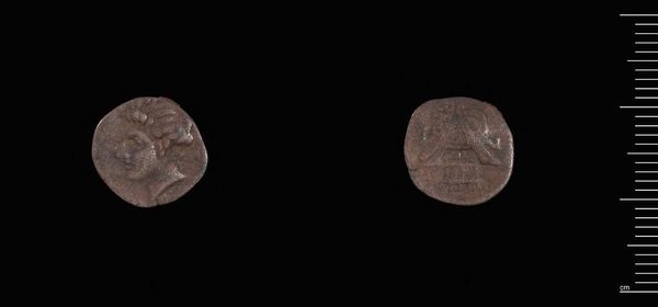 Curator: This is a Diobol of Seleucus II, currently residing in the Harvard Art Museums. Editor: It’s remarkably small, isn't it? The way the metal has worn gives it a tactile quality, whispering stories of hands it passed through. Curator: Indeed. This coin, minted under Seleukos II, tells a story about power, trade, and the construction of leadership in the Seleucid Empire. Editor: It's fascinating how such a tiny object could be a tool for political imagery. It’s more than just currency; it’s a statement pressed into metal. What can we make of the labor that went into producing them? Curator: Well, the imagery here, of course, reinforces the Seleucid dynasty's legitimacy through symbolic representations. It played a significant role in disseminating political narratives across their territories. Editor: So, a tangible piece of propaganda, essentially? The material reality of this diobol speaks volumes about the state's control over resources and communication. Curator: Precisely. It highlights how empires sought to shape public perception. Editor: It makes you think about the lasting impact of these tiny objects. They continue to invite discussion, and the marks of labor are still etched in it.