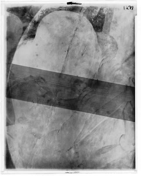 Curator: Here we have an X-radiograph of the "Banquet of Herod," after Lucas Cranach the Elder. It's currently housed at the Harvard Art Museums. Editor: Stark. The black and white gives it an almost brutal honesty. It’s a glimpse beneath the surface, quite literally. Curator: Indeed. X-rays reveal the underdrawings and the construction of the panel. Notice the vertical wood planks joined together—each with its own grain and history. Editor: The raw material speaks volumes. This isn't just pigment on wood; it's a complex interplay of labor, material choices, and the artist's intention, now filtered through technology. I’m curious about the process of creating such an image. Curator: It reveals the story hidden beneath layers of paint. You almost see the artist's hand moving through the process of creation, of refining symbols of power and morality. Editor: It makes one consider the layers of history inherent in an object like this. Not just artistic choices, but the very wood itself contributing to the narrative. Curator: Absolutely, and the ways in which such imagery, such stories, continue to resonate, even in this modern view. Editor: So, this image gives a new meaning to the term “art history.”