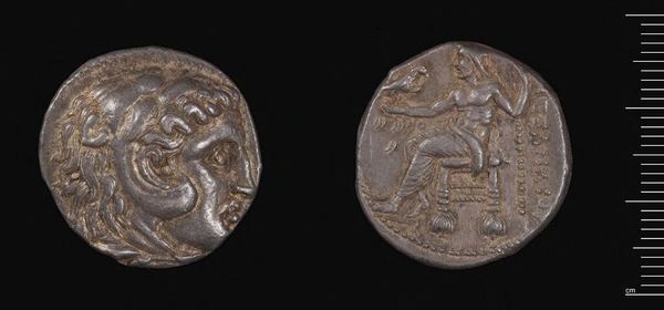 Curator: This is a tetradrachm of Antiochos I Soter of Syria, struck in Laodikeia ad Mare, honouring Seleukos. Editor: It feels… burdened. Not just by age, but by the weight of empire. Like a silver sigh. Curator: Absolutely. The coin served as a form of propaganda, a tangible symbol of power and legitimacy during a period of political complexity. Editor: And what’s more intimate than money, right? This little disc passed through so many hands, whispering the emperor's name, ensuring loyalty and trade. Curator: Indeed. It embodies the intersection of art, economics, and political power in the Hellenistic world. Editor: It makes me wonder about all the lost stories embedded in its metal. Curator: Precisely. And today, it still holds the power to teach us about a long gone era. Editor: That’s beautiful. It is a sort of time capsule then, isn’t it?