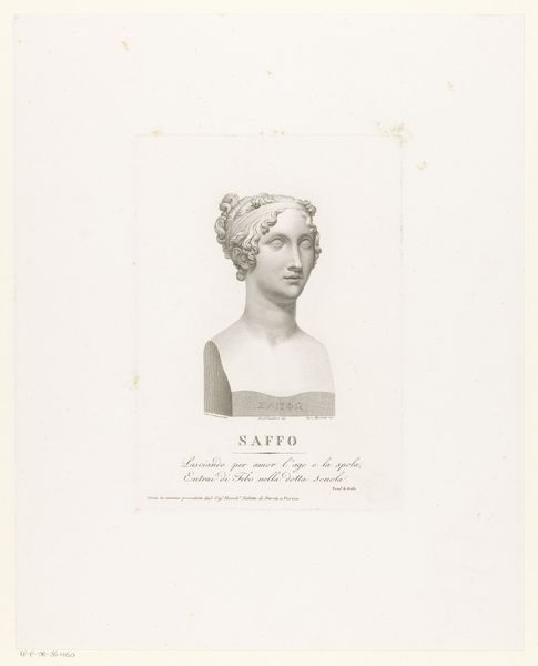 Curator: Welcome. Before us is a print titled "Buste van Hippolyte Auger," created around 1820. It’s a pencil drawing reproduced as a print. Editor: First thought? A ghost in the machine! The precise rendering of the face floating above the roughly sketched plinth feels like a clash of realities. Is this a sculpture that became a dream? Or a dream struggling to solidify into stone? Curator: That sense of spectrality is quite evocative. We must remember the era. Neoclassicism drew heavily from idealized forms of the classical world. Reproducing drawings as prints made such imagery accessible to a wider audience, extending its cultural influence beyond the elite. Editor: Yes, but there’s something almost mournful in those eyes, a certain...resignation? This isn't the triumphant, marble-chested hero, but someone…well, thoughtful. Perhaps the "ghost" I'm sensing is Hippolyte himself, peering out from the past. You know, it looks so much like someone drew a sketch in the olden days and copied it, retaining that hand made quality from long ago. Curator: He looks posed for posterity, the serious look we so commonly see back then was a status symbol in portraits like this. Also we must recognize the socio-economic function here; likenesses like this were acts of recording historical memories. Editor: Do you think Hippolyte felt that way when he sat for the original drawing? All this cultural baggage around his head when maybe he just wanted to go get a coffee. It’s so weird, you know, sitting here looking at a drawing of a print based on someone's sculpture and trying to picture him as real. All this historical weight... it makes him harder to actually "see". Curator: It is a curious distance indeed. By appreciating art within a society, we understand more than just brushstrokes or sculpted lines but cultural ideas, technologies of dissemination, and our constantly evolving historical self-conception. Editor: Exactly! So maybe my "ghost" isn’t Hippolyte after all. Maybe it’s us! Ha! Trying to make sense of him, our projections blurring the image even more. What do you think? Curator: Maybe this work invites us to ponder, like yourself, who we were and are in relation to figures such as him, perhaps we could linger here for a very long time...