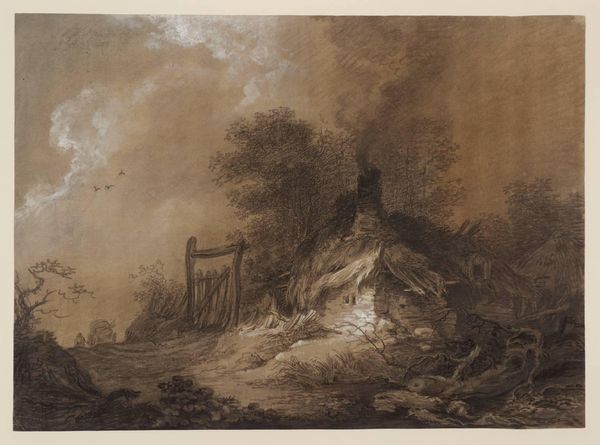 Curator: Here we have William Woollett's "Meleager and Atalanta." Though undated, Woollett lived from 1735 to 1785. Editor: Woah, it's dramatic. Like a stage set, with that castle brooding in the background. The light is so theatrical! Curator: Absolutely. It presents a classical narrative, framing Atalanta within the context of heroic masculinity and hunting culture. Consider the dynamics of power at play. Editor: Power, definitely. But also, a strange vulnerability. Look at how exposed they are in this landscape, almost swallowed by it. Is that a waterfall on the right? Curator: Indeed. The artwork allows us to contemplate the intersections of mythology, gender, and the construction of heroism. It echoes through time, doesn't it? Editor: It does. It's like a dream I once had after reading a Greek myth on a stormy night. Full of beauty, fear, and the wildness of nature.