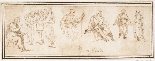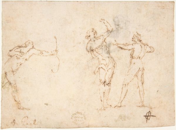 Francesco Allegrini's pen and brown ink drawing, "Soldiers," offers a glimpse into the baroque era's fascination with military might and masculine identity. Born in Italy, Allegrini navigated a society deeply entrenched in patriarchal structures and ongoing conflicts. In “Soldiers,” the figures are captured in dynamic poses, embodying the physical prowess associated with the soldier. Their bodies, though quickly sketched, convey a sense of strength and readiness. This depiction reflects the baroque period's emphasis on heroism, but also raises questions about who gets to be a hero and what is lost in the pursuit of martial glory. Allegrini's drawing invites us to reflect on the stories we tell about power, gender, and the cost of conflict. It prompts us to consider the perspectives often left out of these narratives.