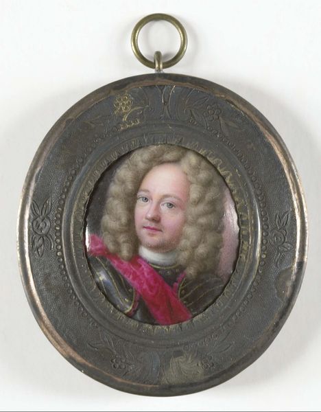 Pieter le Sage painted this miniature portrait of Willem Frederik, the future King William I of the Netherlands, using watercolor on ivory. The choice of ivory as a support is significant, as it was a prized material for miniatures due to its smooth surface and slight translucence, allowing for delicate, luminous effects. Le Sage’s technique involves layering thin washes of color to build up form, capturing fine details like the lace collar and the soft texture of the child’s hair. The portrait is encased in a gold frame, further emphasizing its preciousness and status as a luxury object, available only to a wealthy clientele. The making of such a miniature involved specialized skills in both painting and working with precious materials. It speaks to the patronage systems of the time, in which artists were commissioned to create objects of personal and political significance. By considering the materials, making, and context of this miniature, we gain a deeper understanding of its cultural value, challenging traditional distinctions between fine art and craft.