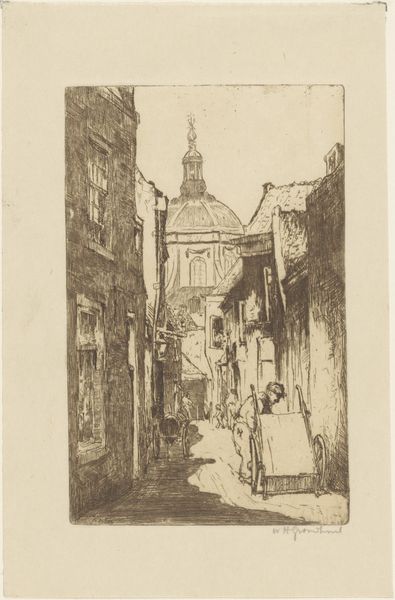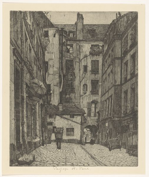Charles Meryon etched "La Rue des Chantres" with a needle, capturing a Parisian street framed by towering buildings and the Notre Dame spire. Gothic spires, like the one piercing the sky here, have always been potent symbols. They represent the human aspiration to reach the divine, echoing ancient obelisks and ziggurats. This upward thrust is a physical manifestation of spiritual yearning, a reaching for something beyond our earthly bounds. Even the bells, prominently displayed at the top of the print, are more than mere timekeepers. Throughout history, bells have signaled not only the hour but also warnings, celebrations, and calls to prayer. Their sound is a powerful force, capable of stirring deep emotional responses, connecting us to communal experiences. The spire and the bells, charged with centuries of collective memory, affect us subconsciously, reminding us of our shared history and the timeless human quest for meaning. This image, like a dream, speaks to us in a language of symbols, evoking emotions that transcend time.
