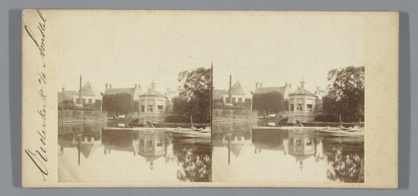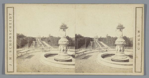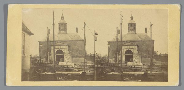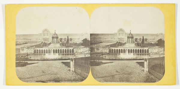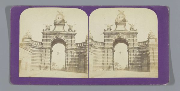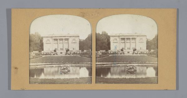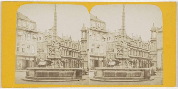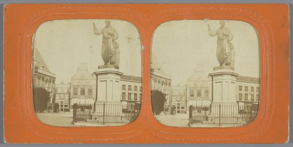 Editor: This is a fascinating stereograph! "Gezicht op het Place des Prêcheurs te Aix-en-Provence," taken sometime between 1862 and 1876 by Jean Andrieu. It’s a photograph printed on card stock and designed to be viewed with a stereoscope to give a 3D effect. I’m immediately drawn to the monumentality of the architecture, dominating the square. What can you tell me about its historical context and purpose? Curator: Well, the fact that this image was captured in a stereograph format already tells us a lot. Stereographs were incredibly popular during this period, serving as a form of mass media entertainment and education. Consider that people had a craving for experiencing different parts of the world. The creation and circulation of the image allowed for democratization of travel. Now, looking at the architecture, what message do you think its imposing form conveyed? Editor: I suppose it presents the power and authority of the city of Aix-en-Provence, even grandeur, to viewers at the time. Was this kind of civic architecture common, and what role did it play socially? Curator: Precisely! Civic architecture served as a powerful tool for reinforcing social hierarchies and instilling a sense of collective identity and pride. Images like these help to propagate narratives about progress and national identity and, also, French dominance at the time. What does it tell us that even small towns, towns not at the capital, also sought monuments of their own. Who was the intended audience? What stories were they expected to carry back with them, when viewing these scenes? Editor: It’s fascinating how a seemingly simple photograph can reveal so much about the values and ambitions of the time. It certainly adds a layer of complexity to what I initially perceived. Curator: Exactly. Art often served as propaganda, not for malign reasons, but to carry value-added narratives of progress, sophistication, order and the like, to broader populations, through diverse media. That's part of the complex, interesting world we enter when analyzing art through the lens of cultural and institutional history.