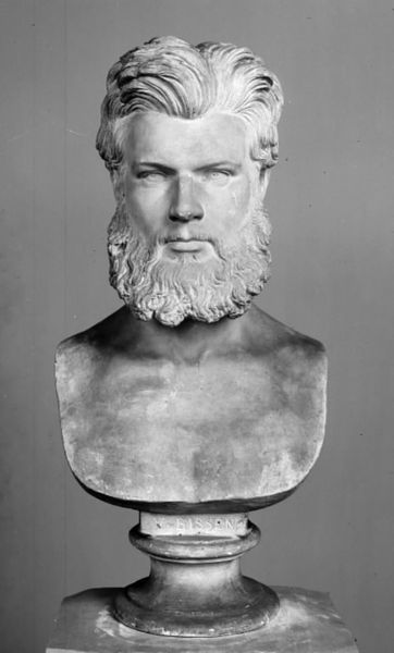 Editor: This is H.W. Bissen's "Self-Portrait," a marble sculpture from 1831. It strikes me how the rough texture of the marble contrasts with the smooth, idealized facial features. What catches your eye in this work? Curator: Well, let's consider the marble itself. Where was it quarried? Who were the laborers involved in extracting, transporting, and carving this material? The entire *process* speaks to a system of labor and a specific socio-economic context in 19th-century Denmark. The sculpture, presented as a "self-portrait", obfuscates those contributing hands. How might this affect our viewing? Editor: So you're saying the artwork's value is intertwined with its means of production, not just the final aesthetic? Curator: Precisely! This wasn't just Bissen alone, divinely inspired. There were workshops, tools, and potentially exploitative labor practices involved. The ‘artist’ wasn’t this isolated, brilliant figure that neoclassical values put up. We should think about these historical workshops and the labour divisions. The deliberate act of obscuring the reality of labour inherent in its creation, promotes a skewed understanding. What are your thoughts? Editor: That shifts my perspective considerably! I hadn't thought about the unacknowledged labour behind a "self-portrait" so directly. Curator: Consider also the intended market. Who could afford a marble bust like this? The material inherently links it to wealth and power. It reinforces social hierarchies even as it might attempt to present a universal ideal of self. The act of crafting such an object elevates itself to the higher art but rests on more “pedestrian” sources of labour. Editor: So, viewing it through this materialist lens gives us a more grounded understanding of its historical context. It is a product of its time and socio-economic constraints. I'll never look at marble sculpture the same way again!