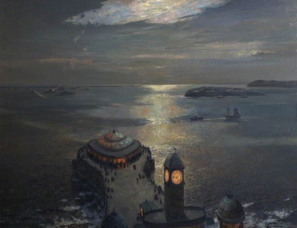 Ivan Konstantinovich Aivazovsky painted this “Moonlit Seascape With Shipwreck” with oil on canvas. The canvas shows an interplay of light and dark, where the moon struggles to pierce through heavy clouds, casting an ethereal glow on turbulent waters. The shipwreck, a ruinous form against the sea, evokes a sense of tragedy. The sea becomes a theatrical stage for a drama of light, shadow, and form, with the clouds swirling above, mirroring the chaos below. Aivazovsky’s dramatic seascapes often engaged with Romantic notions of nature's sublime power, reflecting broader philosophical concerns about the relationship between humanity and the natural world. The scene destabilizes our sense of security, suggesting the fragility of human endeavors against the backdrop of nature's indifferent force. The dynamic composition, with its contrasting elements, invites ongoing interpretation, and through its structural tensions, it explores themes of mortality, the passage of time, and the awesome power of nature.