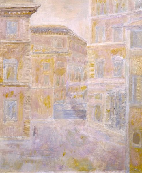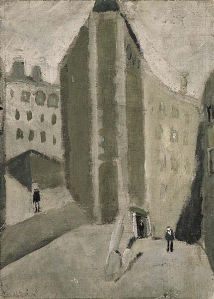 Editor: This is Alice Bailly's "Blick Auf Einen Hinterhof," an oil painting rendered with impasto, though the exact date is unknown. I'm immediately struck by how the architectural structures feel confining. How do you interpret this work, particularly in terms of urban space and lived experience? Curator: Bailly’s depiction offers a fascinating commentary on the burgeoning urban landscape. I see an intimate yet constricted perspective, evoking feelings of isolation within community. Think about how the limited viewpoint challenges the romantic idealization of nature often seen in landscapes, shifting towards a focus on the social realities and psychological impact of city life, especially for women artists exploring modern spaces. What does that impasto contribute? Editor: The impasto, I think, emphasizes the texture and roughness of the urban environment, giving it a tangible, almost oppressive presence. Does the work also make you think about the rise of Expressionism at the time? Curator: Precisely. The Expressionistic style serves as a vehicle to explore not just what is seen, but what is felt, channeling anxiety and alienation, perhaps related to gender and identity. Can we consider this overlooked space –the ‘hinterhof’– as a metaphor for marginal spaces inhabited by those on the fringes? Editor: That’s insightful. The ‘hinterhof’ then becomes more than a physical space, a representation of social and emotional states, reflecting potentially the artist's or others' marginalized position. Curator: Indeed, and understanding Bailly’s context, one can consider this work as part of a broader conversation on modernity, identity, and the politics of space. What initially seemed like a simple cityscape opens up avenues for a far richer discourse. Editor: This makes me appreciate the work's depth, seeing it now as a complex commentary on urban life. Curator: Absolutely. It is a great way to remember the critical potential of overlooked spaces and marginalized perspectives in art history.