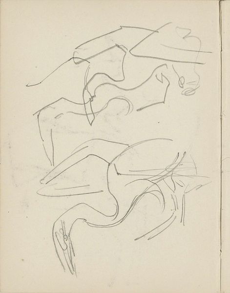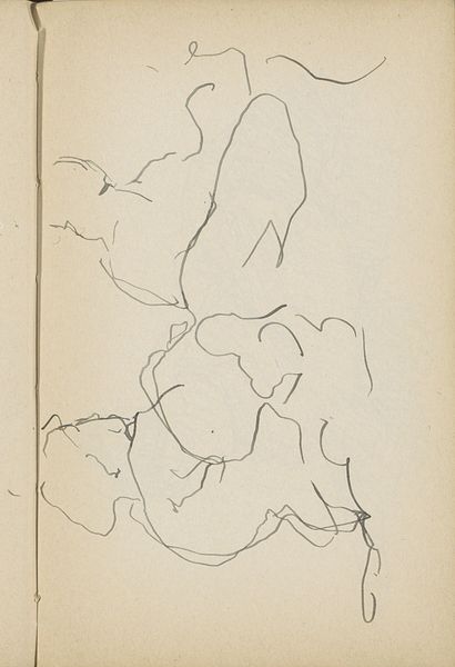 Curator: This work is titled "Twee zittende figuren," or "Two Seated Figures," made in 1919. It’s a pen and ink drawing on paper currently residing here at the Rijksmuseum. Editor: My first thought? Ethereal, like ghostly outlines barely tethered to the page. The line work feels so minimal, yet it suggests a certain weight or presence. They look like shadows caught mid-conversation, don’t they? Curator: The bareness emphasizes the essential, the form. The artist uses line to capture posture, the set of a shoulder, a tilting head—each detail reveals an inner state, reflecting the social unease after the Great War and the rising existential questions in art. Editor: Definitely a melancholy note. I wonder if that sparseness also hints at vulnerability? It reminds me of that feeling of trying to remember someone’s face—bits and pieces, enough to conjure a presence, but not the whole story. Curator: This echoes artistic trends of the period when simplification mirrored the cultural shift away from ornate societal structures towards deeper psychological insights, inviting interpretation based on the observer’s own emotional background and memories associated with similar experiences. Editor: You can practically feel the weight of unsaid words. I’m almost filling in details myself: who they might be, what they’re feeling, even the texture of their clothes. That's great artistry, to make you feel complicit. Curator: Yes, indeed. It encapsulates the broader fin-de-siècle themes: mortality, social criticism, and questioning established norms, challenging viewers to engage and decode layers of significance rooted in universal anxieties and aspirations. Editor: Well, I am definitely feeling those anxieties! Gives me plenty to ponder, doesn't it? Maybe I’ll find answers in another gallery. Curator: Indeed. "Two Seated Figures" beckons further reflection and engagement with history to unravel more nuances, allowing a lasting understanding of artistic ingenuity embedded within specific eras and cultural beliefs.