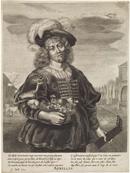 Editor: This is "Man with Miniature Portrait in Hand," an engraving from between 1615 and 1726, by an anonymous artist, housed at the Rijksmuseum. The density of the lines used to create light and shadow are stunning. What can you tell me about the composition? Curator: Let us consider the interplay between the portrait’s subject and the miniature he presents. Notice how the gaze of the man intersects with that of the figure within the miniature. Is it an accurate rendering or an idealized one? And how does that visual contrast affect the meaning? Editor: The subject's clothing is quite elaborate too! I am not sure I can tell what material he would be wearing? Curator: The materiality of the clothing is suggested by the texture achieved through varied engraving techniques. Think about the differences in the hatching, stippling, and cross-hatching, and how they each represent various fabrics or textures. Editor: It looks like an etching but the line work is extremely uniform. I now see how each distinct mark constructs the complete form. The varying methods used allow you to distinguish individual shapes within the clothing, the face, and even the background! Curator: Precisely! The artist’s manipulation of the medium provides depth and dimension, directing our gaze. These methods add layers of complexity to the seemingly straightforward subject matter. Editor: So by focusing on the construction and aesthetic components of the artwork, a story emerges. I'm realizing that analyzing the details helps bring to light so many subtle narratives. Curator: Precisely. Such considerations regarding line, texture and structure will bring you great insight when appreciating other artworks.