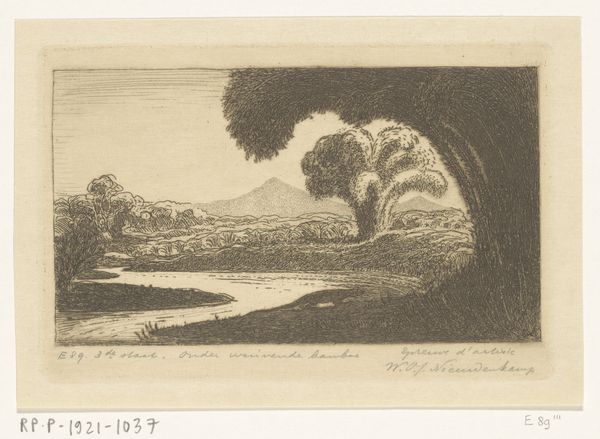Simon Moulijn created this landscape, "Gezicht op een park", using graphite. The Netherlands at the turn of the century was a society undergoing rapid change. The rise of industrialization, urbanization, and shifting social structures deeply influenced artistic expression at the time. Moulijn's landscapes often depict serene scenes that act as an escape from the rapidly modernizing world. But how do these depictions of serenity intersect with the realities of urbanization and industrialization? It is interesting to consider the emotional experience of viewing this landscape in the context of societal change. The artwork prompts contemplation about the relationship between nature and society, and it gently invites us to reflect on our own place within the landscape of history and identity.