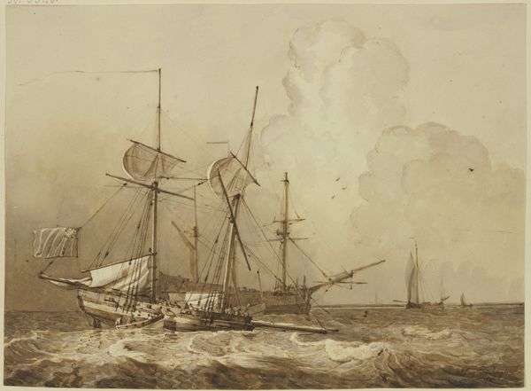 Abraham Storck the Elder created this drawing of three canonball boats with pen and gray ink. Ships, emblems of commerce, power, and exploration, have long held symbolic weight, from ancient Egyptian funerary boats carrying souls to the afterlife, to Viking longships embodying conquest and discovery. Here, the central ship fires a cannon, a motif resonating with conflict and dominion. Consider how this display of naval strength connects to the winged Nike, a symbol of victory, often depicted on the prows of Greek ships, or the Roman war galleys adorned with triumphant imagery. The smoke from the cannon carries with it the echoes of countless battles. These vessels aren't merely tools for trade or warfare; they are potent symbols of human ambition, courage, and our unyielding quest to traverse the unknown, evoking a primal mix of exhilaration and dread. The psychological impact of the ship, with its power to both connect and isolate, persists through time, mirroring our own journey through life's uncertain waters. These ships remind us that, like the sea, history ebbs and flows.