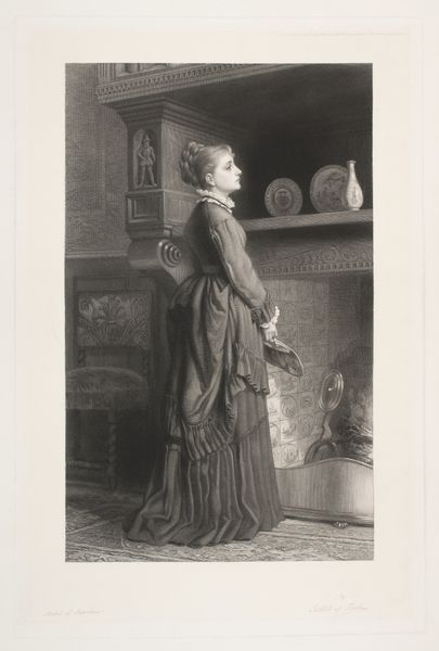 Richard Josey engraved "Arrangement in Grey and Black No. 1," a portrait of Whistler's mother, with mezzotint. The stark palette emphasizes the sitter's solemnity, her dark dress and white cap framing a face etched with time. The profile view echoes ancient Roman portraiture, a deliberate nod to classical dignity. Yet, the subdued tones evoke a Victorian sensibility, a somber reflection on mortality. The composition mirrors earlier devotional images of saints, but here, the sacred is secularized, the mother elevated to an iconic figure of domestic virtue. The veil, a symbol of piety and mourning, can be seen echoed in other artworks across time. Consider, for instance, the veils worn by women in Renaissance portraits, where it signified modesty and marital status. In this context, the veil subtly alludes to the universal experience of loss and the enduring strength of maternal love, engaging viewers on a deep, subconscious level. This symbol, constantly reappearing, evolves and assumes new meanings across different times.