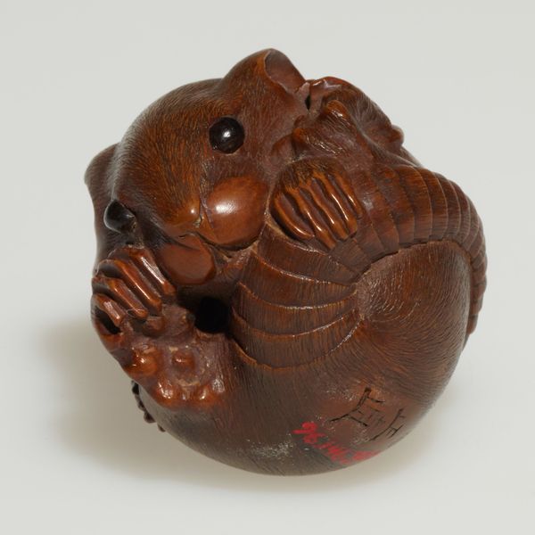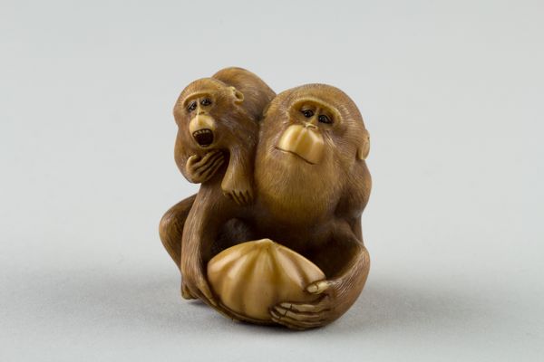 This Netsuke of a seated monkey carrying a bunch of grapes and leaves was made by Koichi in the 19th century. It’s carved from a single piece of wood, likely boxwood or a similar fine-grained material. The carving is incredibly detailed, capturing the monkey's posture, fur, and facial expression. The grapes and leaves add a layer of complexity, showcasing the carver's skill. Netsuke like this one were essentially toggles, used to secure small pouches or containers to the wearer's sash. So they had to be durable, small, and have a smooth finish so as not to damage clothing. The piece is more than just a functional object; it reflects a deep understanding of naturalism and a playful sense of design. The choice of a monkey with grapes may be symbolic, perhaps alluding to themes of abundance or cleverness. Looking at this netsuke, we are reminded that even the smallest objects can be a testament to artistic skill and cultural values, blurring the lines between craft and fine art.