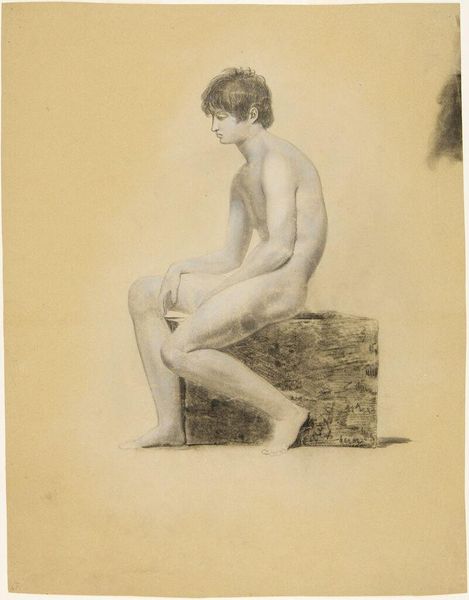 Curator: The subtle tonal shifts achieved through charcoal and chalk lend "Seated Female Nude" by Antonio Pichler from 1769 a haunting presence. It’s currently held at The Art Institute of Chicago. What's your immediate reaction? Editor: An introverted grace. Her pose evokes a contained, almost melancholic energy. I'm drawn to the monochromatic scheme. The careful modulation gives such depth without overt theatricality. Curator: Absolutely. Look closely at how Pichler builds the form with distinct layering of charcoal and pastel on paper. The means of production here are fairly academic. Notice the hatch marks in the ground of the work. Do you read this is an exercise in depicting classical form or perhaps something more personal from the artist? Editor: Both, perhaps? Semiotically, the academic approach signifies status and control. This was made, one assumes, under the patronage of someone or to win accolades and the academic route provided these very valuable, life sustaining, material rewards for the artist. However, I sense an individuality too; the downward gaze avoids confrontation, and the rendering is far more vulnerable. This vulnerability is enhanced with charcoal dust settling into every bit of the paper support. I'd almost dare to say this vulnerability feels rather modern! Curator: Yes! While the piece undeniably adheres to the Neoclassical style, we can also investigate the socio-economic context from which it arose. Drawings like these were valuable teaching tools for aspiring artists who often came from families with considerable wealth. Consider how materials were acquired, mixed and ultimately presented to the art consumer. Editor: Speaking of technique, look how Pichler renders the shadows – a web of delicate lines, almost imperceptible from a distance, but utterly crucial for defining her contours. Notice the textures that exist only where shadow occurs as an almost byproduct. This work creates such a seductive play between absence and presence! Curator: And think about the material constraints. The scale suggests intimacy; was it a preparatory sketch, perhaps a fragment of a larger project never realized or sold to a wealthy family? Editor: Ultimately, it exists on the very, very long continuum between artist and subject, raw material and refined artistic object, labor and leisure! And what a legacy it is. Curator: A legacy indeed. We're left contemplating not only Pichler's mastery of form but also the fascinating web of influences and materials that brought this introspective portrait into being.