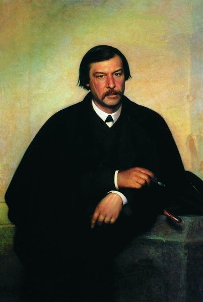 Curator: Here we have Francesco Hayez’s 1851 oil on canvas, a portrait of Gian Giacomo Poldi Pezzoli. Editor: Moody. Like peering into a room lit only by candlelight. He’s… intensely present, yet somehow shrouded. It’s the deep shadow, I think. Curator: Hayez certainly mastered dramatic chiaroscuro. But it's not mere drama, is it? There’s an interesting subtext at play. Consider, Gian Giacomo was a collector and philanthropist. Note how his hands are positioned. Editor: Yes! Folded in his lap, relaxed… but also controlled. Not passive, but deliberately contained. Is that symbolic of his self-mastery, maybe, his cultivation of inner and outer worlds? Curator: It could be. The hands were very important for transmitting subtle messages in portraits. Think, too, about the era. The Risorgimento was in full swing. Northern Italian elites found themselves in a moment of national awakening. A cultivated identity signaled a quiet, reasoned patriotism. The black coat is simple but beautifully tailored, as if to communicate elegance without excess. Editor: Elegant, certainly. But also practical. This is the kind of image you find in a study or private library, filled with leather bound books. I can imagine him holding court, discussing art or politics, his shadow self a subtle reminder of human limits, even within the splendor. Curator: Indeed. Hayez was very adept at depicting this tension between aspiration and lived experience. Editor: Makes you wonder, doesn't it, about the narratives that we construct for ourselves. And the versions we show to the world. What shadows do we choose to keep, and what light do we hope others see in us? Curator: Portraits offer an intimate, very tailored glimpse. Editor: A designed image intended to outlive you. Well, Hayez certainly did a masterful job with this commission!