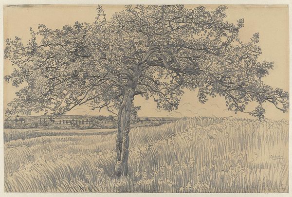 Charles Jacque’s etching, "Wheat Field," from 1849, offers us a pastoral scene dominated by the ripe abundance of a wheat field. Wheat, beyond its literal presence here, has been a potent symbol across cultures—denoting fertility, harvest, and divine provision. Consider its echoes: from the ancient Egyptian rites honoring the grain goddess to its role in Christian Eucharist, where bread, made from wheat, symbolizes spiritual sustenance. Observe the solitary figure walking the narrow path, a motif resonating with life's journey. This symbol reappears throughout art history in various guises. Our connection to symbols like wheat is not merely intellectual; it resonates on a deeper, almost subconscious level. The archetypal image of the harvest taps into a collective memory of cyclical renewal and communal survival. The golden field evokes feelings of warmth and security. The cyclical nature of symbols like wheat—planting, growth, harvest, and replanting—mirrors the perpetual rhythm of human experience, ensuring its resurgence in art across different eras.