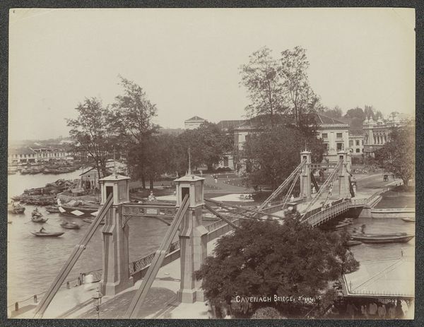 Editor: We’re looking at Antoine Sevruguin’s photograph, "Gezicht op Qazvin met links een boulevard en rechts aan de horizon de Vrijdagmoskee," taken sometime between 1880 and 1895. It’s an albumen print, sepia-toned and remarkably detailed. It feels almost dreamlike, distant. What do you see in this cityscape that speaks to its time and place? Curator: It's a fascinating record of cultural memory, isn't it? The way the photograph positions the viewer high above the boulevard, almost as if suspended, grants a powerful perspective. Note how the long avenue, lined with trees, draws your eye directly towards the Friday Mosque. That visual emphasis establishes not only physical geography but also underlines the dominance and cultural weight of religious architecture in Qazvin. Editor: The repetition of forms - the trees, the arches in the building to the right - are visually interesting, creating a sort of rhythm. Curator: Precisely! Repetition often functions as a symbolic echo across time, binding past, present, and potentially future. How do you interpret the seemingly empty boulevard? Does its emptiness signify tranquility, or something else entirely? Editor: It's intriguing, maybe an evocation of an older order before modernization began? Or a constructed image of an exotic east? Curator: Potentially both! It reflects the way Westerners viewed and consumed these photographs – constructing their own idea of the ‘Orient.’ Sevruguin's lens captured more than just physical space; he inadvertently recorded the gaze and expectations of an era. It’s a document shaped by those complex interactions. Editor: It's made me think about how every image carries multiple layers of meaning, shaped both by the subject and by the viewer. Curator: Absolutely. These historical records have immense cultural power because they capture the emotional atmosphere that shaped society's values at that time. It allows us to continue interpreting the lasting memory.