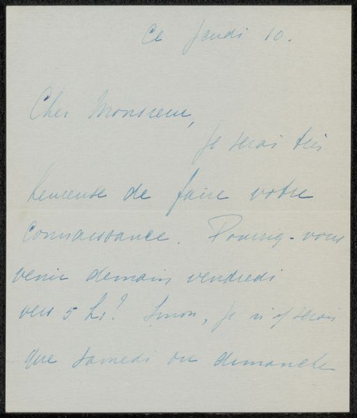 This letter to Philip Zilcken was written by Alphonse Maze-Sencier, likely in the late 19th century, with ink on paper. The letter isn't just about the words, but the very act of handwriting itself. The controlled flow of ink across the page reveals a mastery of penmanship, a skill cultivated through dedicated practice. This wasn't just about communication; it was about projecting an image of refinement and education. Consider the social context: handwriting was a primary form of communication, but it also signified status. A legible, elegant hand indicated one's position in society, marking a clear distinction from the laboring classes. The act of writing, like other forms of skilled work, held cultural value. The letter invites us to think about how even the simplest materials and processes can become charged with cultural and social meaning, reminding us that art extends far beyond the gallery walls.