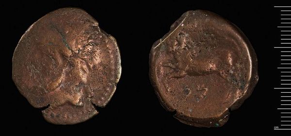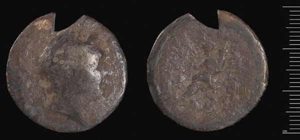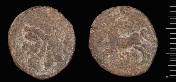 Curator: This is a Follis of Herakleios, from Constantinople. Struck under Abd-al-Malik of the Umayyads. Editor: Its rough texture and dark patina make it feel incredibly ancient and heavy with untold stories. Curator: Indeed. It represents a fascinating period of transition. The Umayyads, while expanding their empire, adopted existing Byzantine coinage, initially maintaining the emperor's image. Editor: What strikes me is how the coin blurs the lines of power and identity. The continuation of the Byzantine imagery, even by new rulers, speaks volumes about the complexities of cultural exchange and dominance. Curator: Absolutely. It's a physical manifestation of shifting socio-political landscapes, where symbols of authority are both preserved and subtly repurposed. Editor: This piece really highlights how art serves as a powerful artifact of cultural hybridity, reflecting the negotiation of power, religion, and identity during periods of great historical change. Curator: I agree. It’s a small object, but with huge implications for understanding the Umayyad dynasty's rise and evolving public image.