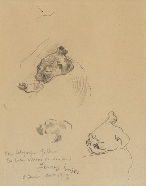Julie de Graag rendered these two reclining dogs using graphite on paper. While these are traditional materials, they allow for a freedom of line, and immediacy of expression. The essence of this work lies in de Graag’s use of line and shading to capture the dogs’ form and posture. Notice how she varies the pressure of her pencil to create depth and volume, suggesting the soft curves of the dogs' bodies. The texture of the paper itself contributes to the overall effect, adding a subtle graininess to the drawing. The simplicity of the materials and the directness of the technique also convey a sense of intimacy and authenticity. De Graag engaged with traditions of academic drawing, where studies from life were essential for honing skills of observation and representation. But she also brought a distinctly modern sensibility to her work, emphasizing spontaneity. Ultimately, it is through her mastery of these fundamental materials and processes that de Graag elevates what could have been a simple sketch into a work of art.