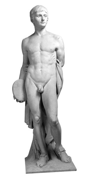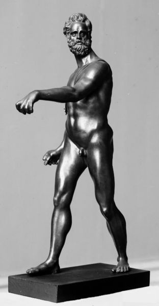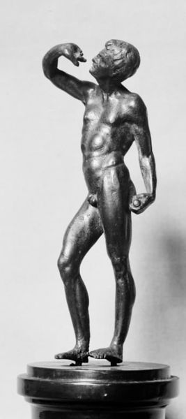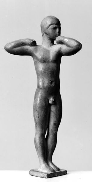 Curator: Welcome. Before us stands Svend Rathsack's arresting wooden sculpture, "Adam Newly Created," from 1913, currently residing here at the SMK, Statens Museum for Kunst. Editor: The figure appears incredibly raw. You see the chisel marks everywhere on the nude form, and its incomplete limbs lend it this brutal feeling, like it was torn from the very material it's made from. Curator: The figure is presented nude, a deliberate reference to the biblical Adam. Consider, though, that it's "newly" created. The title frames this piece as a commentary on the very moment of genesis and existence, not the idealized Adam, fully formed. The absent facial features only intensify the sensation of a new soul entering our world. Editor: The medium, the visible tooling marks... It's rough. The labor invested in this thing feels extremely visible, far from high-polished marbles or bronzes that suggest refinement and eternity. It's literally made by human hands, which, perhaps, invites one to ask, 'who creates whom?' Is it Man and the material that beget the idea? Or is the 'newly created' the chisel, wood, and skill to make this object? Curator: Intriguing thought. We've had a history of interpreting Adam as representing perfect creation, however, here, the incompleteness reflects the expressionist concern with raw, immediate experience, perhaps also a reference to spiritual anxieties about mankind's imperfect existence. Editor: Precisely. And by literally exhibiting the making process—almost as if this Adam came kicking and screaming into our world—Rathsack rejects that neat dichotomy between craft and concept we often see in art history. Curator: Perhaps, it reflects our own individual struggles with identity in a quickly modernizing world? Editor: Indeed. It seems Rathsack is grappling with both material constraints and existential anxieties. "Adam Newly Created" is both creation and the record of its own making, inseparable. Curator: So, is that a mark of newness or of the heavy toil that preceded it? An open question perhaps for you to reflect on.