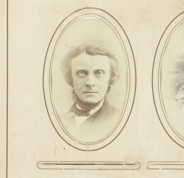 Curator: Here we have a portrait photograph, simply titled "Portret van een jonge man met vlinderstrik," which translates to "Portrait of a Young Man with a Bowtie." Its creation is placed between 1872 and 1879, with the photographer being Hendrik Anthonie Karel Ringler. Editor: What strikes me first is the sepia tone; it casts a melancholic, almost fragile aura. It reminds us of how much has happened historically between when it was taken and where we are now. Curator: Absolutely. This was the burgeoning age of accessible portraiture through photography. Think about the social implications. Suddenly, having your likeness recorded wasn't solely for the aristocracy. The working and middle classes now had this opportunity. Editor: Which brings us to the 'how' of its making. I'm interested in the photographic process and the sitter’s participation. The lighting must have required intense focus and patience to create this soft depth. His hair contrasts sharply with his expression; this photograph creates layers, right there. Curator: Indeed. We often romanticize the painter, but here the photographer has a vital role to play, navigating the technology to produce not just a visual record but also a work that conveys mood and class. Look at his clothes, clearly signifying his place within a social hierarchy of the late 19th century. He wanted to make the proper impression, of course. Editor: Considering that photographs like this were becoming relatively common at that time, did studios produce individual portraits or was mass production more common? And what influence did photographic technologies have on the painting tradition? Curator: That’s an excellent point! Photography both democratized and influenced painting, with its direct, representational method changing our perspective of traditional portraiture practices forever. Artists suddenly could no longer position themselves as unique producers of human likeness. Editor: A poignant and perhaps underappreciated example of this period. Thank you. Curator: My pleasure, it gives us a rich insight into the past while also helping us rethink art and visual technologies and their intertwined socio-political layers.