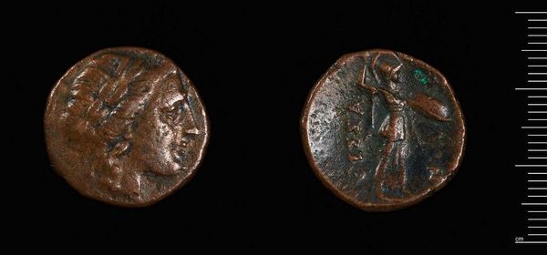 Editor: Here we have a bronze coin of Huvishka, weighing just over 14 grams. Its age is unknown, but it feels incredibly weighty with history. What can you tell me about its socio-political importance? Curator: Coins served as powerful propaganda tools. Who is depicted on this coin and what does this tell us about Huvishka's reign and his desired image? The imagery, circulation, and acceptance of these coins reflect the cultural influence and political control asserted by the ruler. Editor: So, in essence, it's not just currency but a statement of power. Curator: Precisely. And consider the role of the artisans who produced these. The institutional support for art during Huvishka's time likely played a significant role in shaping the Kushan Empire’s visual identity. Editor: I never thought of a coin having such a rich story to tell! Curator: These objects often hold the key to understanding a society's values and ambitions.