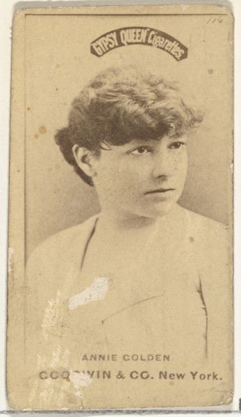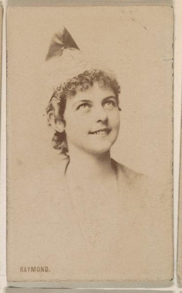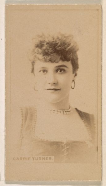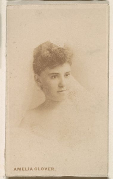 Curator: Let's turn our attention to this fascinating trade card, "Miss Langdon, from the Actors and Actresses series (N45, Type 3) for Virginia Brights Cigarettes," dating from 1885 to 1891. Editor: There's a palpable tension between the opulence suggested by her faint crown and the ephemerality of its context as a cigarette advertisement. I immediately wonder about the economic realities that linked performers and mass-produced tobacco products. Curator: Exactly. The piece is a marriage of photography and printmaking. Note the smooth gradations of tone in her face, rendered with an almost classical smoothness that's very artful. Editor: And that smoothed appearance speaks directly to the techniques of mass production. We’re looking at the commodification of image and fame, transforming the actress Miss Langdon into a kind of circulating icon, fueled by a network of factories, distribution channels, and consumer habits. What material processes ensured the consistency needed for widespread distribution? Curator: It’s compelling to consider how these portraits operated within a formal visual economy. The framing of her gaze, directed off to the side, generates a field of aesthetic energy and suggests a kind of introspective turn. This echoes popular portrait conventions while strategically positioning the product in relation to feminine beauty. Editor: I find that so much of its value lies in unveiling hidden structures of labor. Think of the tobacco farmers, the factory workers churning out cigarettes, the marketing strategies designed to associate smoking with glamour and social mobility. Where was this printed? Curator: These were produced by Allen & Ginter in Richmond, Virginia. What really captures me is how this ordinary object becomes such a revealing historical artifact, brimming with the dreams, desires, and commercial activities of its time. Editor: Ultimately, by examining the materiality of the artwork, we uncover how artistic expression is inextricable from social and economic forces, broadening our understanding.
