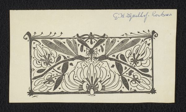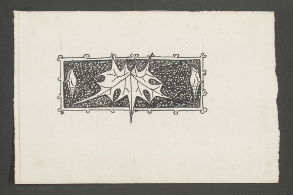 Curator: Editor: So, here we have "Vignet met bloem" by Reinier Willem Petrus de Vries, made sometime between 1884 and 1952, a drawing in ink. The first thing that strikes me is its symmetry. How should we interpret this piece? Curator: That symmetry immediately signals something. Given its time and the artist’s leaning towards Art Nouveau, we must look beyond the decorative. Ask yourself, who was benefiting from "beauty" in that era and whose labor was being erased to produce it? Does the geometry provide some rigidity against a world in motion? Editor: I never thought about it like that, that’s quite insightful. But is it really more than just decoration? Is every flower drawing a political statement? Curator: Not every flower, of course. But consider Art Nouveau as a conscious effort to uplift crafts, pushing back against industrialization and its dehumanizing effects. It idealized pre-industrial labor. This drawing becomes an echo of resistance and an attempt to redefine value outside capitalist structures. It makes you wonder how an artist reconciles beauty with social realities. What possibilities for challenging injustice might we identify today, if we embrace that spirit of resistance to reclaim creativity and community in a new context? Editor: That’s a very interesting approach! I can see it as more than a decorative design now, a subtle critique within a beautiful form. Curator: Exactly. The piece prompts us to think about beauty itself: who gets to define it, and what systems of power are often concealed beneath its surface? Editor: Thanks for this. I’ll never see Art Nouveau the same way again! Curator: Nor will I, I hope! Thank you for guiding me.