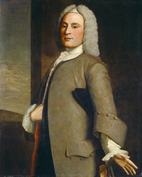 This portrait of Francis Brinley was painted by John Smibert, likely in the 1720s or 30s, using oil on canvas. The artist skillfully layered the paint to create the textures of Brinley's clothing, the soft curls of his wig, and the smoothness of his skin. The use of oil paint allowed for blending and subtle gradations of color, achieving a lifelike representation. This formal style was popular among the colonial elite, and while it may seem straightforward, it involved significant labor. From grinding pigments to stretching the canvas and applying multiple layers of paint, each step required specialized knowledge and skill. Smibert’s art represents not only his abilities as an artist, but also the social and economic systems that supported his craft. Materials like fine linen canvas and imported pigments were luxury goods, and the price of a commission reflected the artist's labor and the sitter's social standing. Ultimately, the painting is a testament to both the craftsmanship of the artist, and the sitter’s position in the social hierarchy of colonial America.